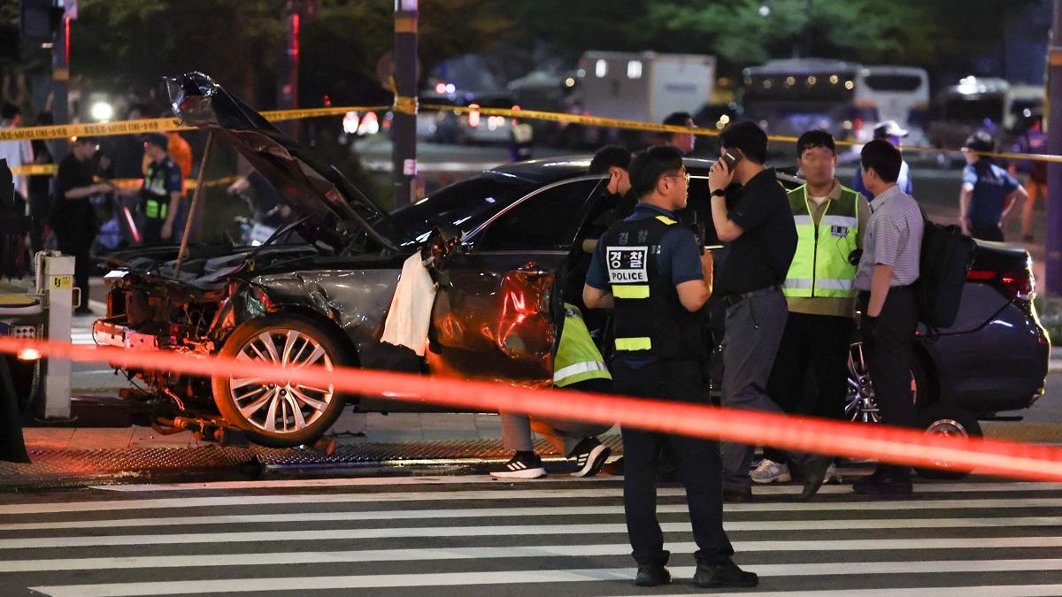 YTN TV a raportat că vehiculul a intrat în grupul de pietoni aflat pe trecerea de pietoni după ce a lovit alte două mașini.